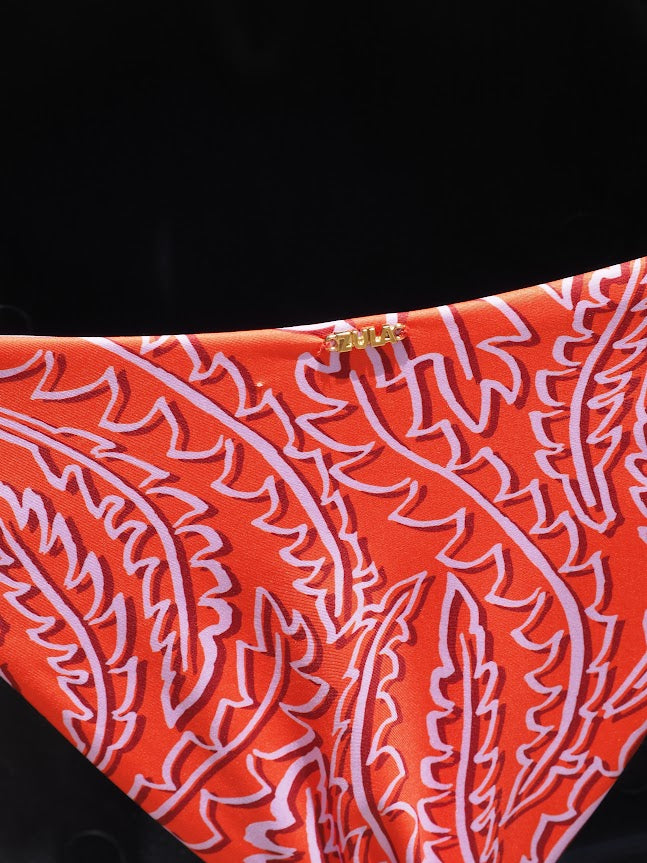 Get ready to turn heads with the Red Velvet Full Coverage Bikini Bottom, featuring a bright red-orange base sprinkled with playful lavender leaves. It’s like a tropical garden party for your beach day—full coverage to keep you comfy and confident while you soak up the sun or chase waves. Who knew staying covered could look this fun and fabulous?