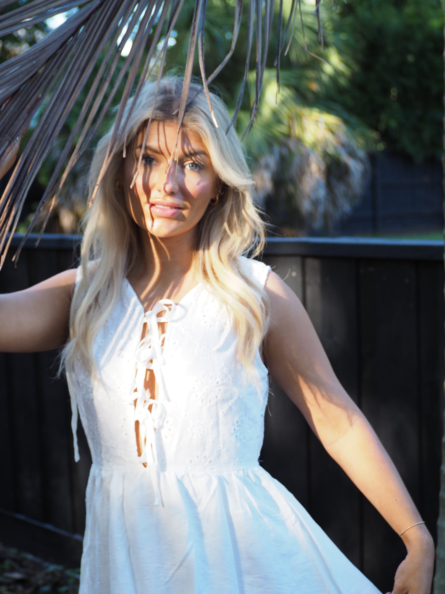 The Sweetheart Tie Dress is a white dress featuring delicate floral embroidery and charming ties at the top. Its soft, feminine design highlights subtle details that create a sweet, romantic look perfect for warm days and special moments. Lightweight and graceful, this dress brings a touch of gentle elegance to your wardrobe.